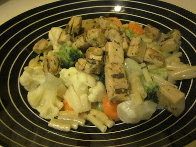 Oh, and since today is technically retro recipe day, I thought I'd show you a crappy photo of what I ate for dinner last night. In keeping with the retro theme, everything was prepackaged because I'm a working woman with NO TIME. Haha. White cheddar Earth Balance mac and cheese, California blend frozen vegetables, Beyond Meat chi'kn cooked in garlic coconut oil and rosemary. Totally yum. Totally meat, veg, carb.