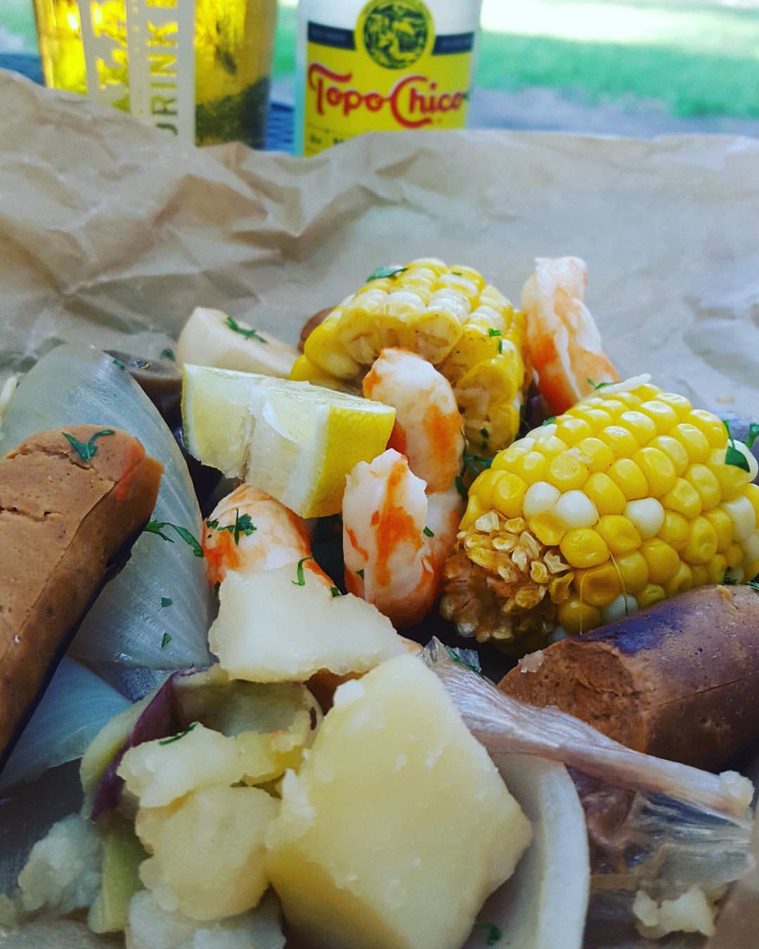 Crawfish boils were a regular part of my childhood. When I was in middle school, our next door neighbor was from Louisiana. All summer long, he'd go on these fishing trips and return with crawfish to boil. He'd cook up a big pot, and dump it on a table in the backyard where the entire neighborhood lined up to grab a piece. We ate with our hands and all that spicy boil juice got everywhere. It's decades later, and I've been vegan or vegetarian for so much of my life that this is the first time I've had a boil in over 20 years. What a way to usher in summer!